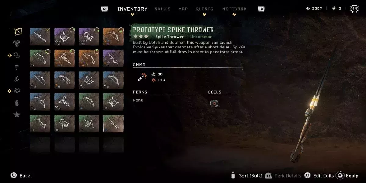 Aunque el Lanzapúas Prototipo tarda un poco en cargarse, su capacidad para perforar armaduras hace que merezca la pena. Además, los pinchos que lanzas explotan poco después de clavarse en su objetivo, lo que inflige daño adicional. Ten en cuenta que estas explosiones pueden destruir piezas de máquinas que los jugadores podrían recoger, así que ten cuidado con dónde apuntas.