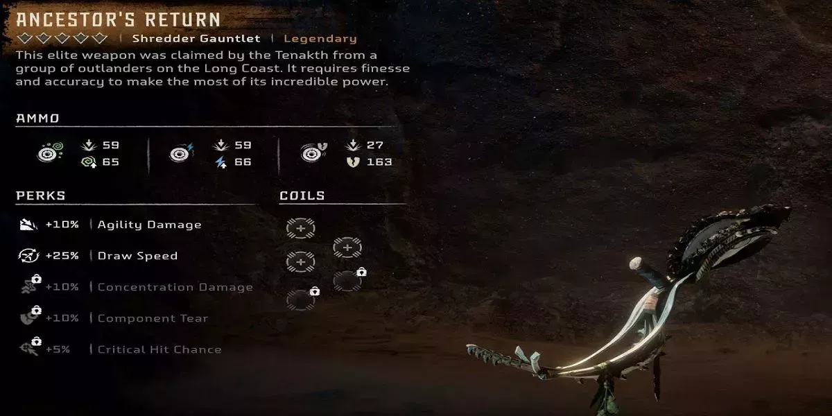 El Retorno del Ancestro es el único Guantelete Triturador entre las 10 mejores armas de Horizonte Oeste Prohibido. Es la opción más poderosa de su subclase y una de las armas más potentes de todo el juego. Para obtener el Retorno del Ancestro, los jugadores deben completar las nueve Ruinas Reliquia y devolvérselas a Stemmur en Ember Oculto.