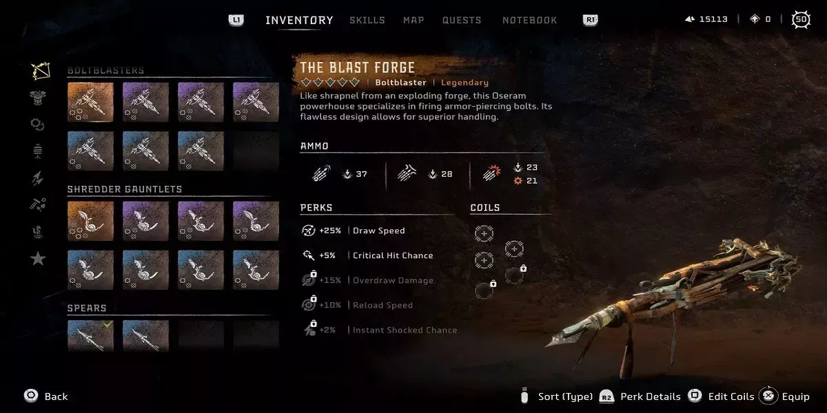 Aquellos que estén interesados en la mejor arma de Horizon Forbidden West no tienen más que buscar en la legendaria Rompedora de proyectiles, la Forja de explosiones. Al igual que otras de las mejores armas de Horizon Forbidden West, los jugadores tendrán que canjear 80 medallas de arena ganadas con esfuerzo para conseguirla.