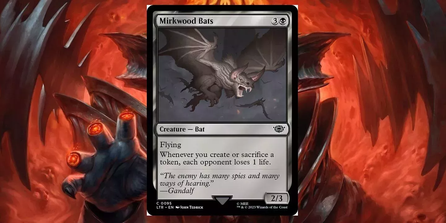Los Murciélagos de Mirkwood funcionan bien incluso con mazos que no sacrifican necesariamente todas sus criaturas. Basta con hacer fichas como criaturas o fichas de Tesoro o Comida para activar esa habilidad, por lo que cada oponente perderá mucha vida en el transcurso de varios turnos.