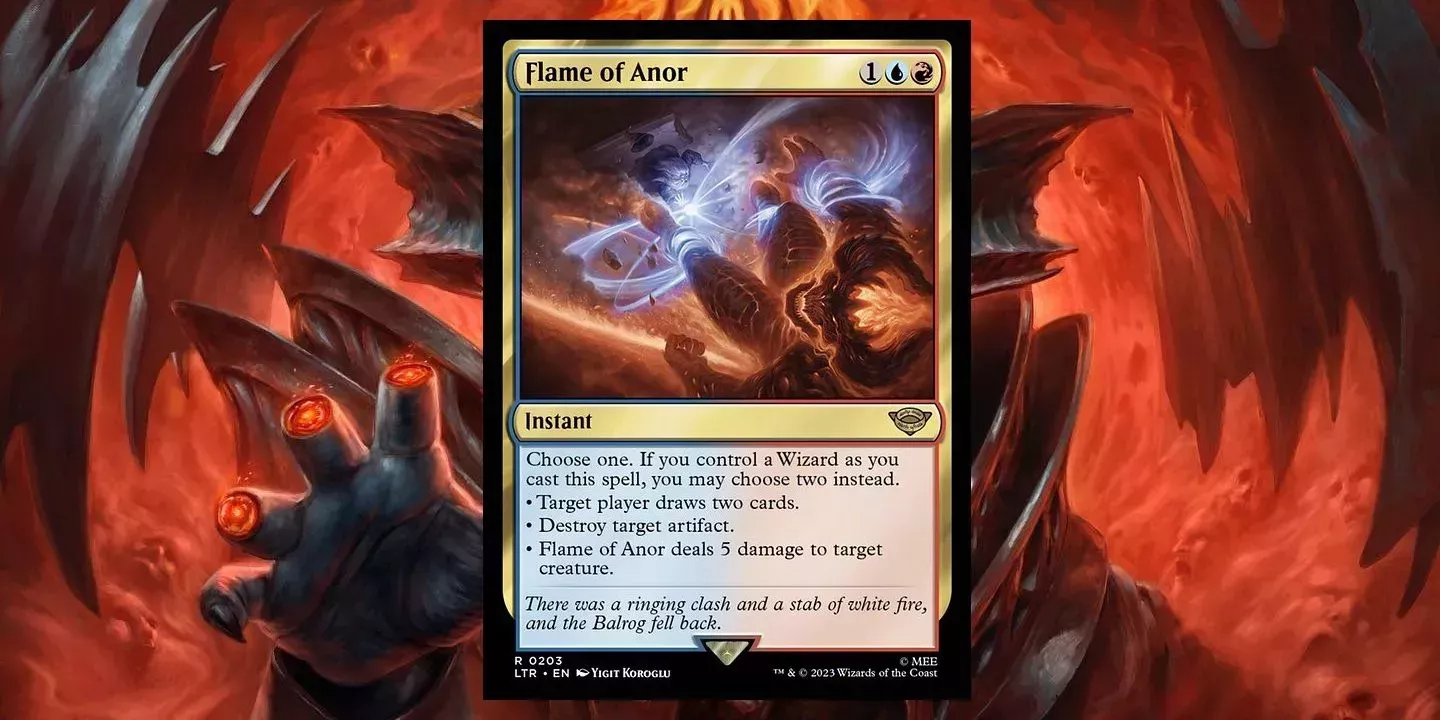 Llama de Anor es una de las mejores cartas instantáneas de la colección, y funciona bien con la tribu Mago, que es perfecta para el maná azul. Llama de Anor es como una carta "encantadora", que permite al jugador elegir uno de los tres efectos que puede usar, y los tres modos son impresionantes.