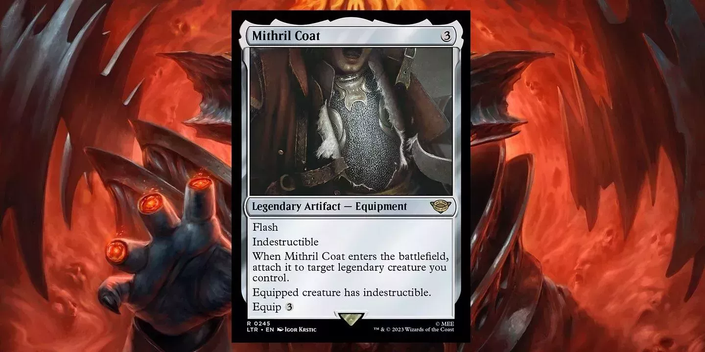 Mithril Coat tiene destello para tomar a los oponentes por sorpresa, y también es indestructible. La criatura equipada también ganará indestructibilidad para sobrevivir al daño de combate y a muchas formas de eliminación, y como bonificación, Mithril Coat puede equiparse de golpe al entrar en el campo de batalla para ahorrar maná.