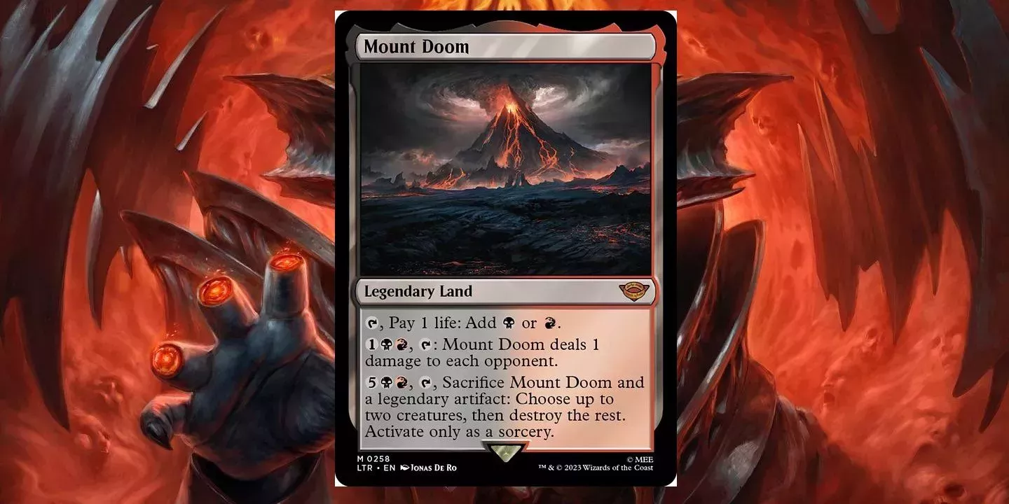 El Monte del Destino es una de las cartas más sabrosas de Cuentos de la Tierra Media, y también una de las más fuertes. Puede fijar maná con negro y rojo, y puede infligir 1 de daño a cada oponente a lo largo del tiempo. Sobre todo, el Monte del Destino puede entrar en erupción y arrasar todo el tablero.
