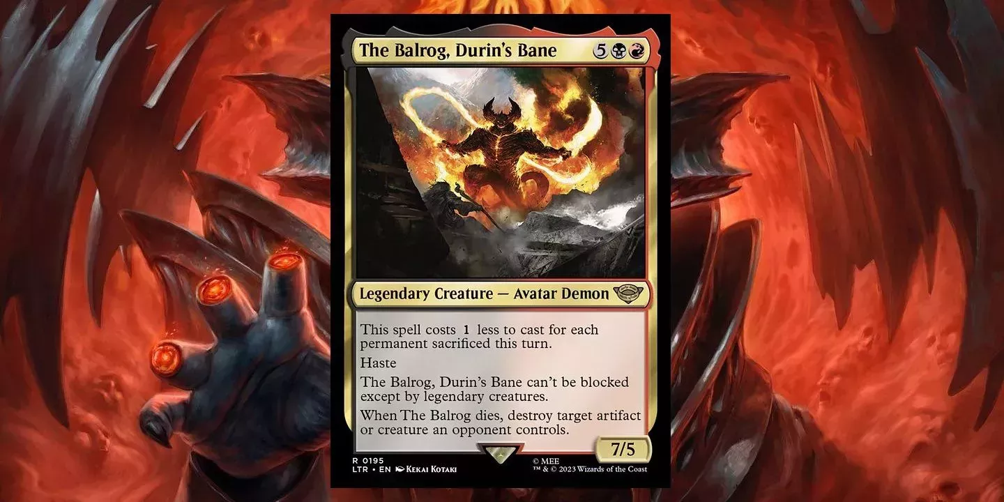 El Balrog, Durin's Bane representa un monstruo de fantasÃa mortal que dominará cualquier partida de booster draft Limitado, aunque puede que sea el que más juego dé en Commander. El Blarog es una enorme criatura legendaria sorprendentemente barata de lanzar si se usan suficientes fichas de tesoro.
