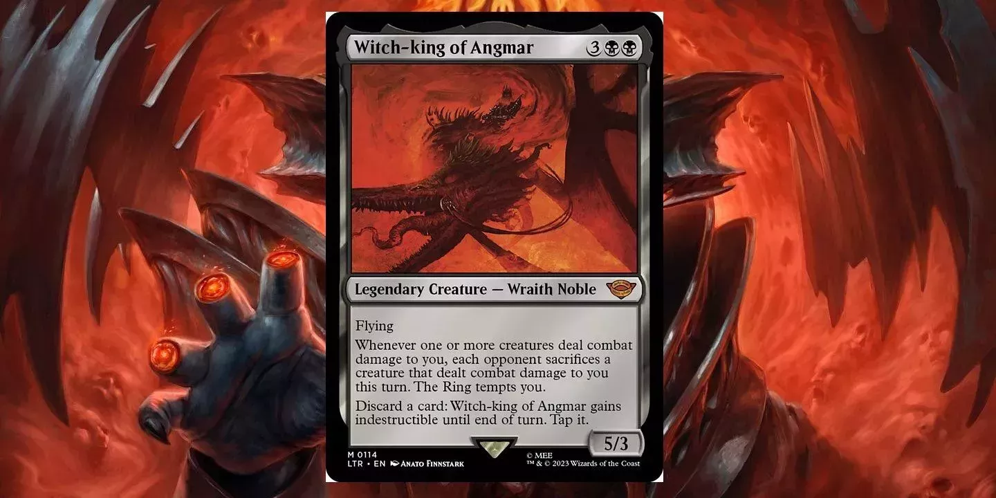 El Rey Brujo de Angmar es una carta de criatura increÃblemente empujada e impresionante en Cuentos de la Tierra Media. Es un aviador 5/3 por 3BB, lo que le permite hacer mucho daño, y el jugador puede descartar una carta para hacer indestructible al Rey Brujo de Angmar y protegerlo de la eliminación y el daño de combate.