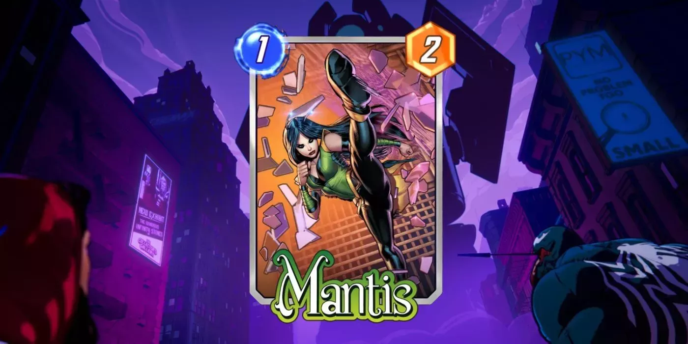 Mantis se incorporó tarde al grupo en el Vol. 2, pero rápidamente se convirtió en un miembro integral de los Guardianes de la Galaxia. También aporta su caos controlado a cualquier mazo de Marvel Snap. Mientras que los otros Guardianes ganan Poder si un oponente juega una carta en el mismo lugar ese turno, Mantis en cambio toma una carta del mazo del oponente.
