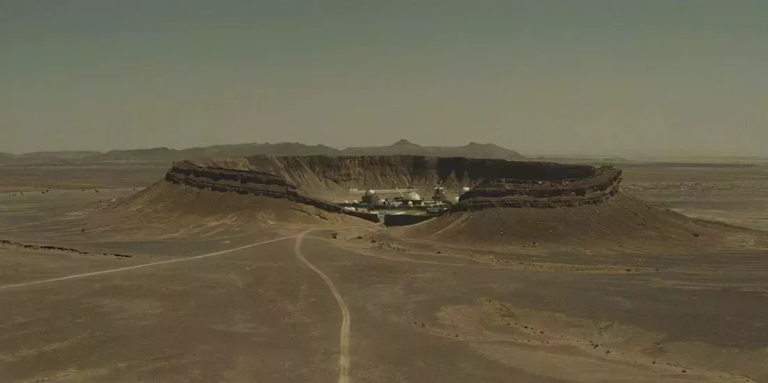 Las impolutas habitaciones grises y blancas dan a la instalación un aire de que Bond ha llegado al purgatorio, para ser puesto a prueba por el frío y calculador Blofeld. El escenario desértico no hace sino aumentar la sensación de que Bond y Swann han quedado atrapados. Las instalaciones son también el escenario de la mayor explosión de la historia del cine, que dura más de 7,5 segundos. En una película de Bond que en gran medida no da en el blanco, esta guarida destaca como un punto culminante.