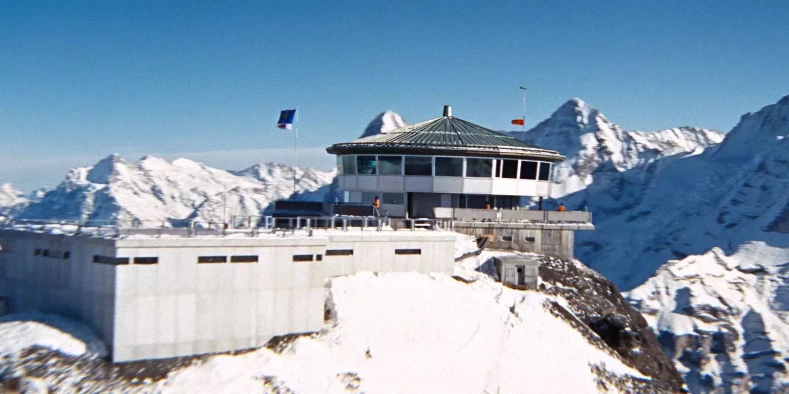 Al servicio secreto de Su Majestad fue técnicamente la cuarta vez que Blofeld aparecía en una película de Bond, pero esta vez fue interpretado por el siempre elegante Telly Savalas. Este Blofeld tiene una elegante guarida en lo alto de los Alpes suizos, el todavía en pie Piz Gloria, que aquí se presenta como su laboratorio de investigación centrado en la investigación de alergias. Sus investigaciones se dirigen a propagar enfermedades a todas las plantas y animales a través de su equipo de mujeres con el cerebro lavado, llamadas los Ángeles de la Muerte.