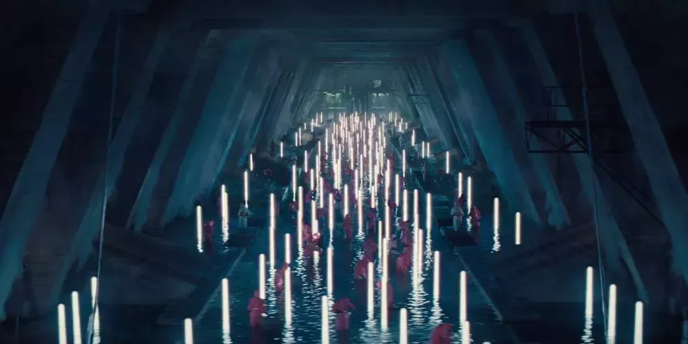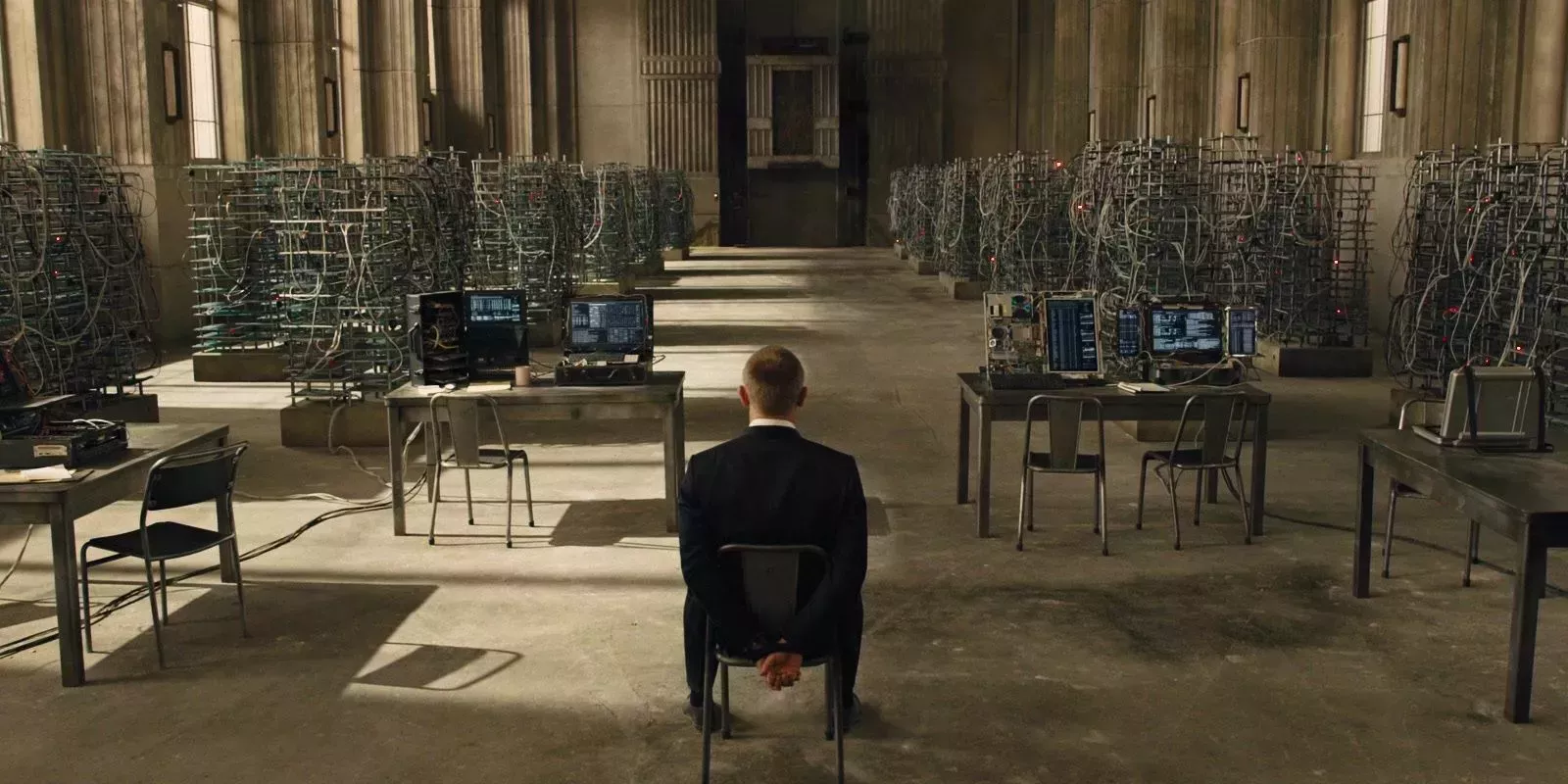 El director Sam Mendes utiliza el tamaño del espacio abandonado con gran efecto dramático, cuando Silva entra por un extremo de una enorme sala de ordenadores y monologa el tiempo suficiente para alcanzar a Bond en el otro extremo, constreñido a una silla. Toda la isla refleja el estilo de control de Silva, que busca amasar un gran poder e influencia con un único propósito profundamente personal. El diseñador de producción Dennis Gassner trabajaría posteriormente en Blade Runner 2049, y es fácil ver las similitudes con la impresionante guarida de Niander Wallace.