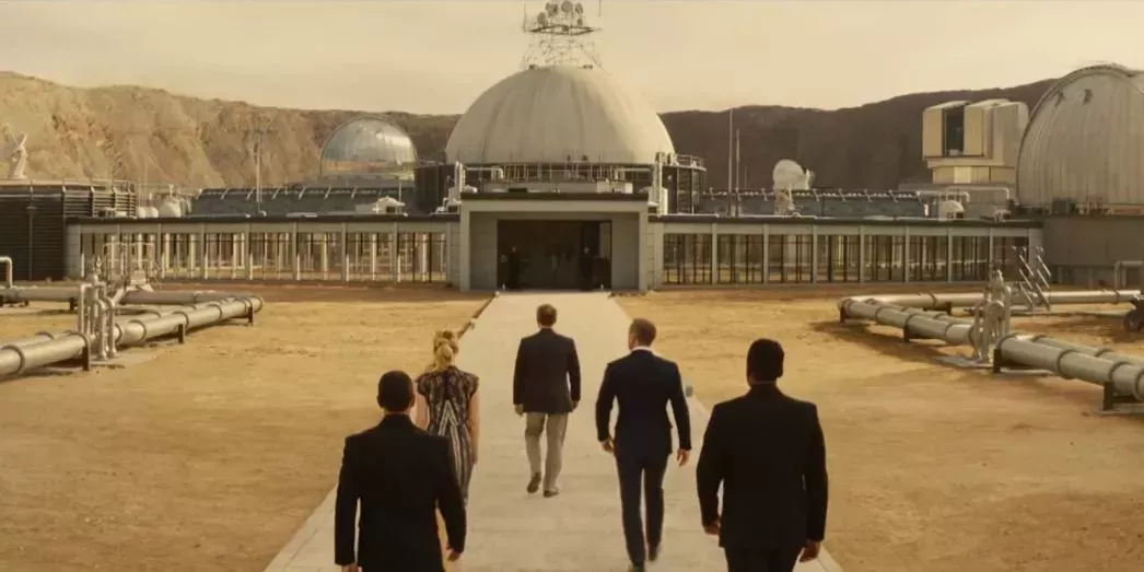 Spectre opta por revelar en diferido que el villano principal, interpretado por Christoph Waltz, es en realidad Ernst Stavro Blofeld, uno de los enemigos más antiguos y formidables de Bond. Su cuartel general está construido en el interior de un cráter provocado por un meteorito que cayó en el desierto del Sahara marroquí. Mientras que el exterior parece un campus estrictamente industrial, los interiores son una elegante colección de salas de control, muchas de ellas con el estilo de una Apple Store infinitamente más minimalista.