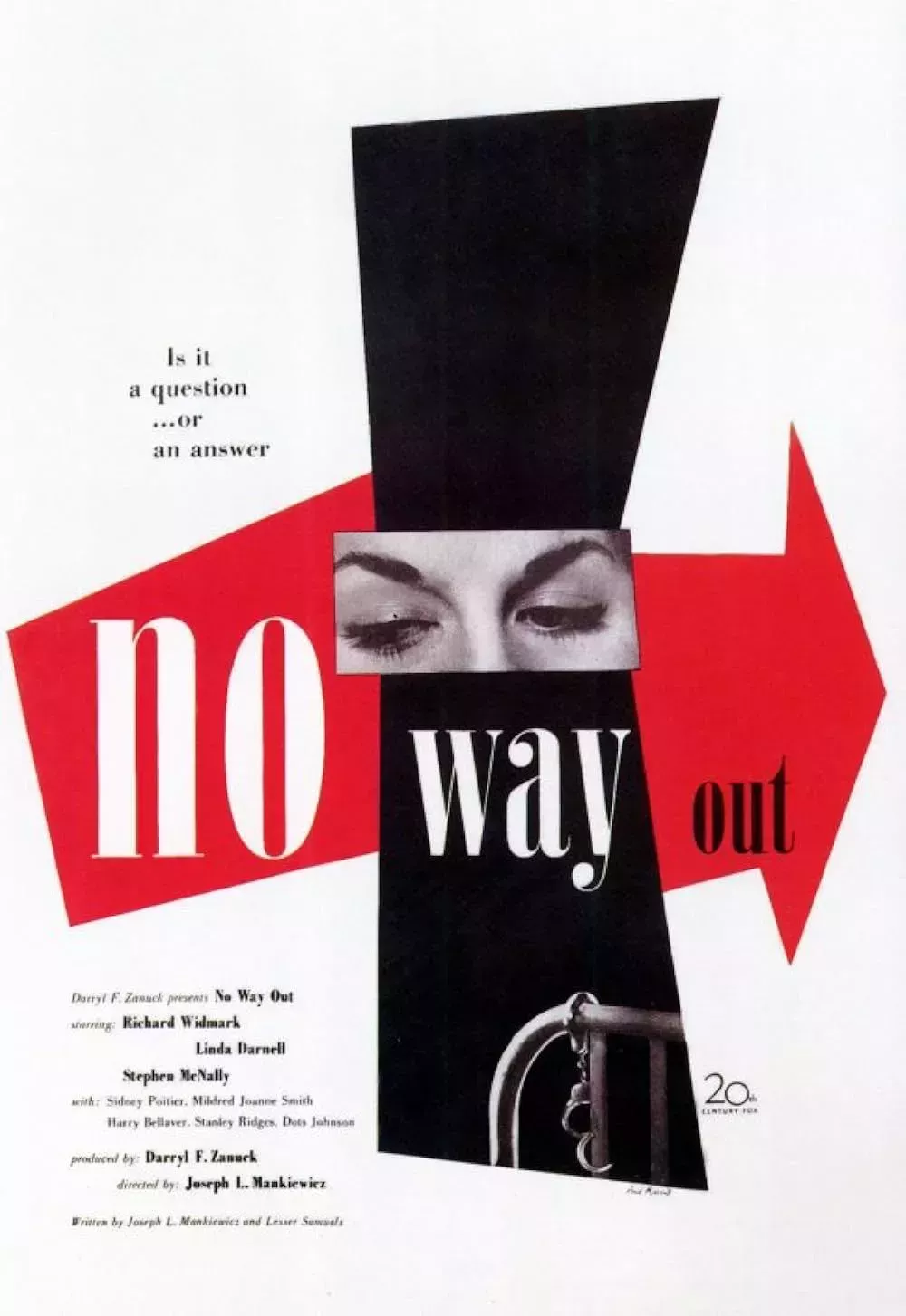 Poitier comenzó su carrera cinematográfica con fuerza, protagonizando la inmensamente controvertida película de cine negro de Joseph L. Mankiewicz No Way Out. La película se centra en un médico negro que debe atender a dos pacientes racistas, ambos hermanos, que acaban de ser tiroteados en un intento de robo. Cuando uno de los hermanos muere, el otro intenta culpar y poner a la comunidad blanca en contra del médico negro.