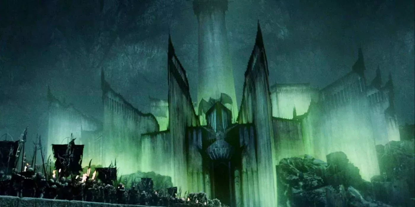 Los cambios en la paleta de colores y el uso de efectos visuales realmente ayudan a cambiar la imagen, pero las influencias de Gondor también pueden verse en todo el diseño. En cualquier caso, los bordes escarpados a lo largo de la cara de la estructura parecen una forma de protegerse de los ejércitos que se acercan, y ¿quién no se aterrorizaría al encontrarse con una estructura tan imponente? No se ve lo suficiente a lo largo de las películas como para destacar, pero cumple bien su función.