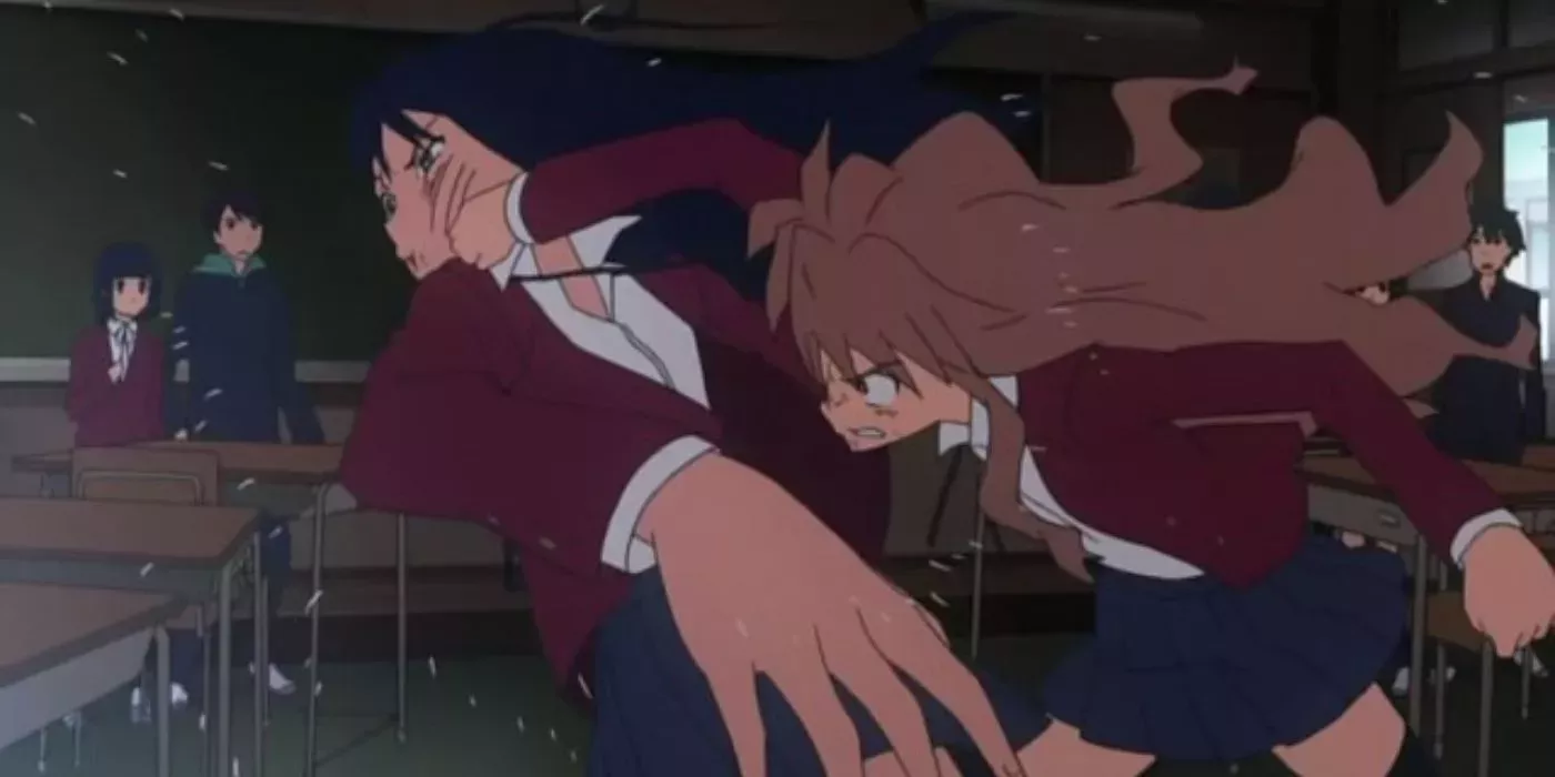 La batalla que sigue es bastante intensa para tratarse de un anime romántico cómico de instituto. Ni Taiga ni Sumire se contienen mientras blanden sus espadas de kendo y se gritan la una a la otra que están intentando proteger a Kitamura. La pelea acaba cuando Kitamura entra para decirle a Sumire lo privilegiado que es amarla. Es una escena desgarradora en la que nadie sale vencedor, pero en la que todos llegan a comprender sus emociones y a superar su angustia colectiva.