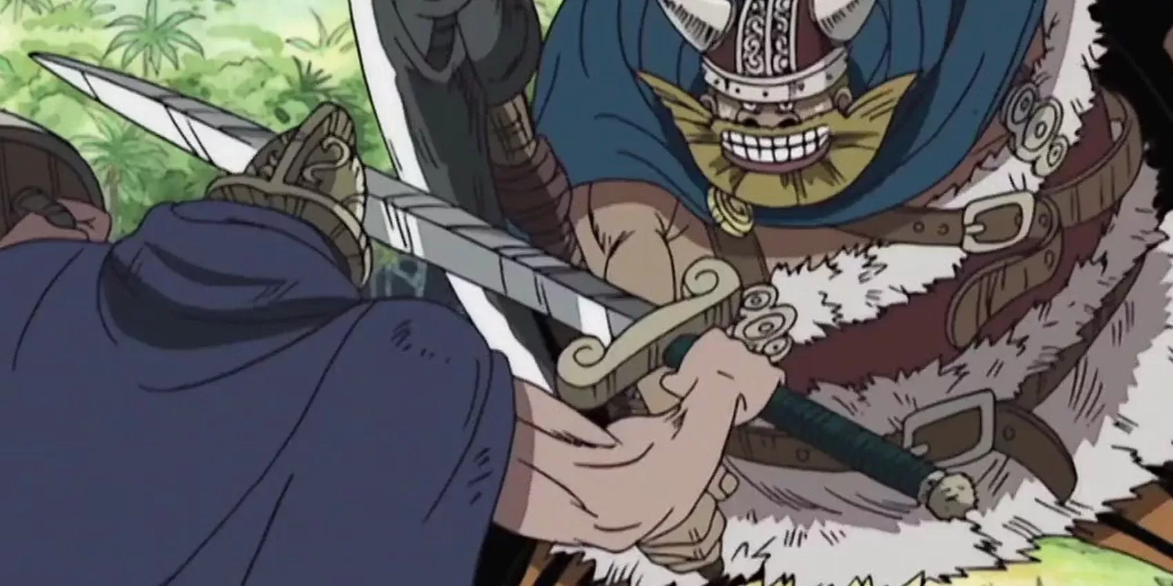 Zoro estuvo a punto de perder. Sin embargo, recordó una lección vital de su maestro sobre los espadachines que pueden cortar incluso acero cuando aprenden a no cortar nada. Zoro consiguió una espectacular victoria en el último minuto con eso en mente y, por primera vez, cortó acero en combate.