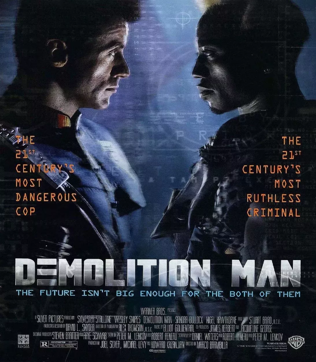 Demolition Man es una gran mezcla de sátira y acción, en la que las rencillas entre John Spartan y Simon Phoenix destrozan la futurista y pacífica ciudad de San Ángeles. La película toma prestado de Brave New World y 1984 para crear una visión original de la sociedad distópica, mientras Spartan navega por un mundo en el que la blasfemia está penalizada y la vida está regulada hasta el aburrimiento.