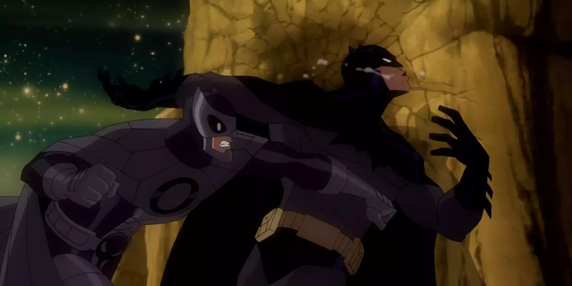 Técnicamente, The Dark Knight Returns consta de dos películas diferentes, aunque la Parte 1 es probablemente la más fuerte, ya que mejora más el cómic. Batman se enfrenta al Líder Mutante en una de las peleas más feroces de la historia de la animación. La coreografía de la pelea captura a la perfección la lucha callejera, el catch wrestling y el jiu-jitsu brasileño, junto con la cantidad adecuada de ocurrencias de Batman. Aunque la pelea final de Batman con Superman no se traduce tan bien como en el papel, sigue siendo una adaptación muy fiel de una de las mejores historias de Batman de todos los tiempos.