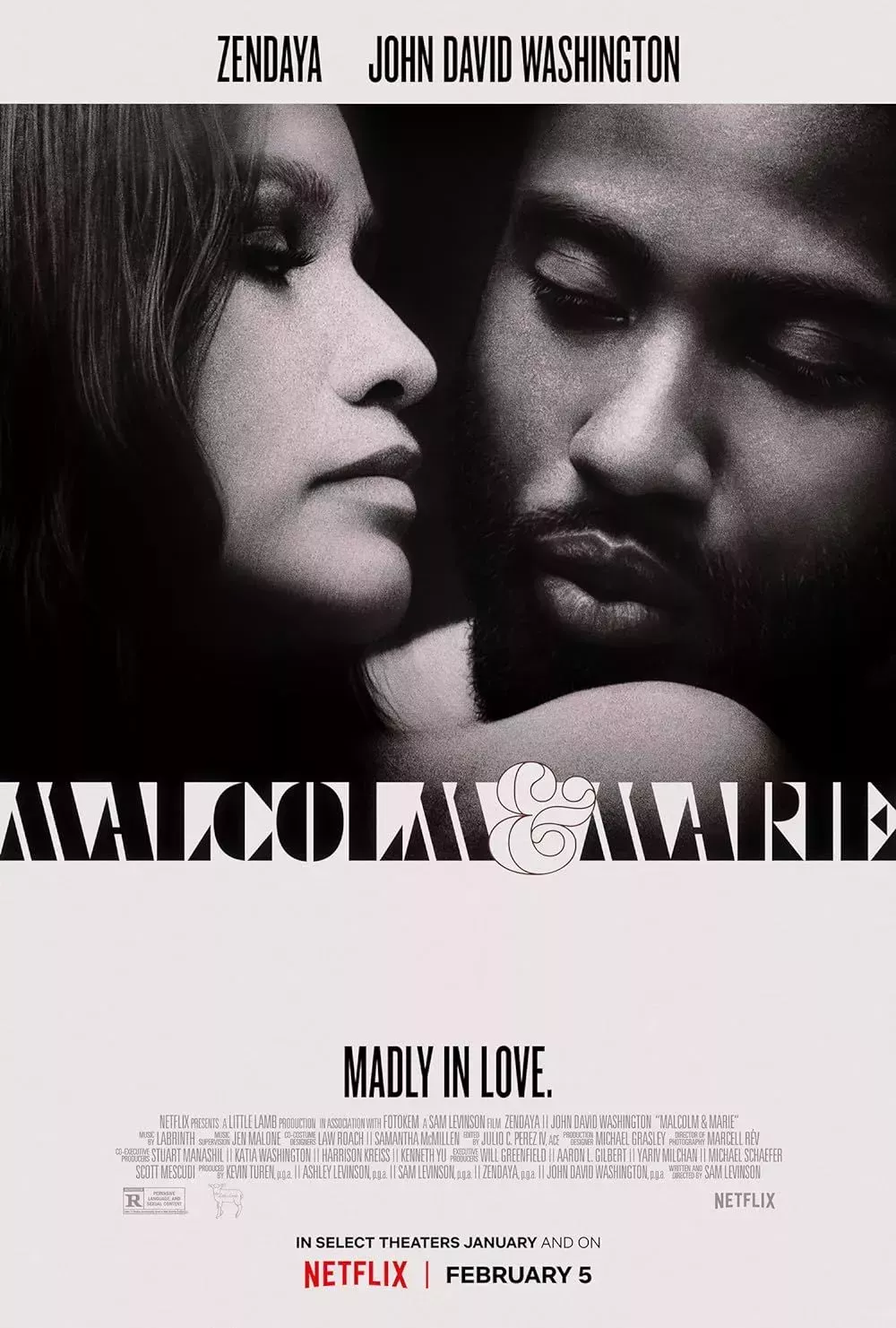 Malcolm & Marie es una película dramática en blanco y negro de 2021 escrita, coproducida y dirigida por Sam Levinson. Está protagonizada por Zendaya y John David Washington, que también ejercen de productores junto al rapero Kid Cudi. Sigue a un guionista y director y a su novia, cuya relación se pone a prueba la noche del estreno de su última película.