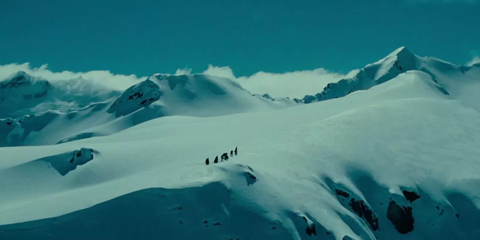 El grupo se encontró con una implacable ventisca de nieve que hizo casi imposible su viaje. Saruman entonaba un conjuro para que cayeran rocas sobre ellos, poniendo en peligro sus vidas. Boromir argumentó que si continuaban, sería "la muerte de los hobbits" Estaba claro que el frío era un factor implacable al que enfrentarse, y con Saruman empeorando las cosas, la seguridad de la Comunidad no estaba garantizada.