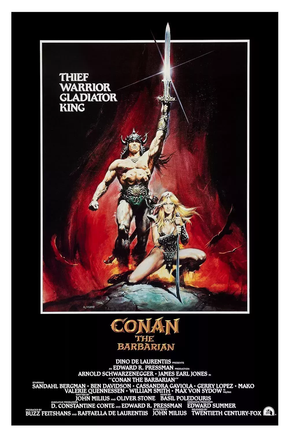 *Disponible en EE.UU.Un joven, Conan, se convierte en esclavo después de que sus padres sean asesinados y su tribu destruida por un salvaje señor de la guerra y hechicero, Thulsa Doom. Cuando crece, se convierte en un luchador intrépido e invencible. Liberado, planea vengarse de Thulsa Doom.