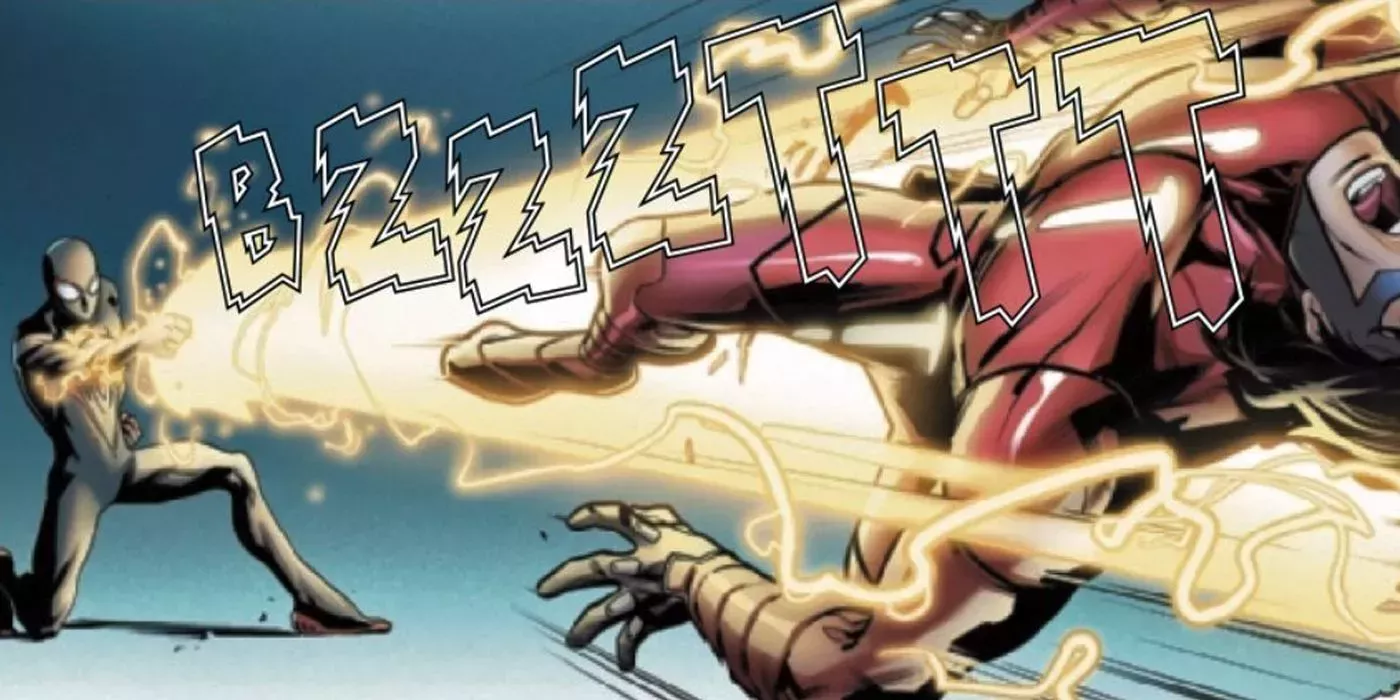 Miles Morales no sólo adquirió la habilidad de camuflarse y trabajar con sigilo, sino que también desarrolló un devastador aguijón bioeléctrico ofensivo. Lo llama en secreto su "ráfaga de veneno", y es lo bastante potente como para detener en seco a algunos adversarios cuando lo saca de su escondite.