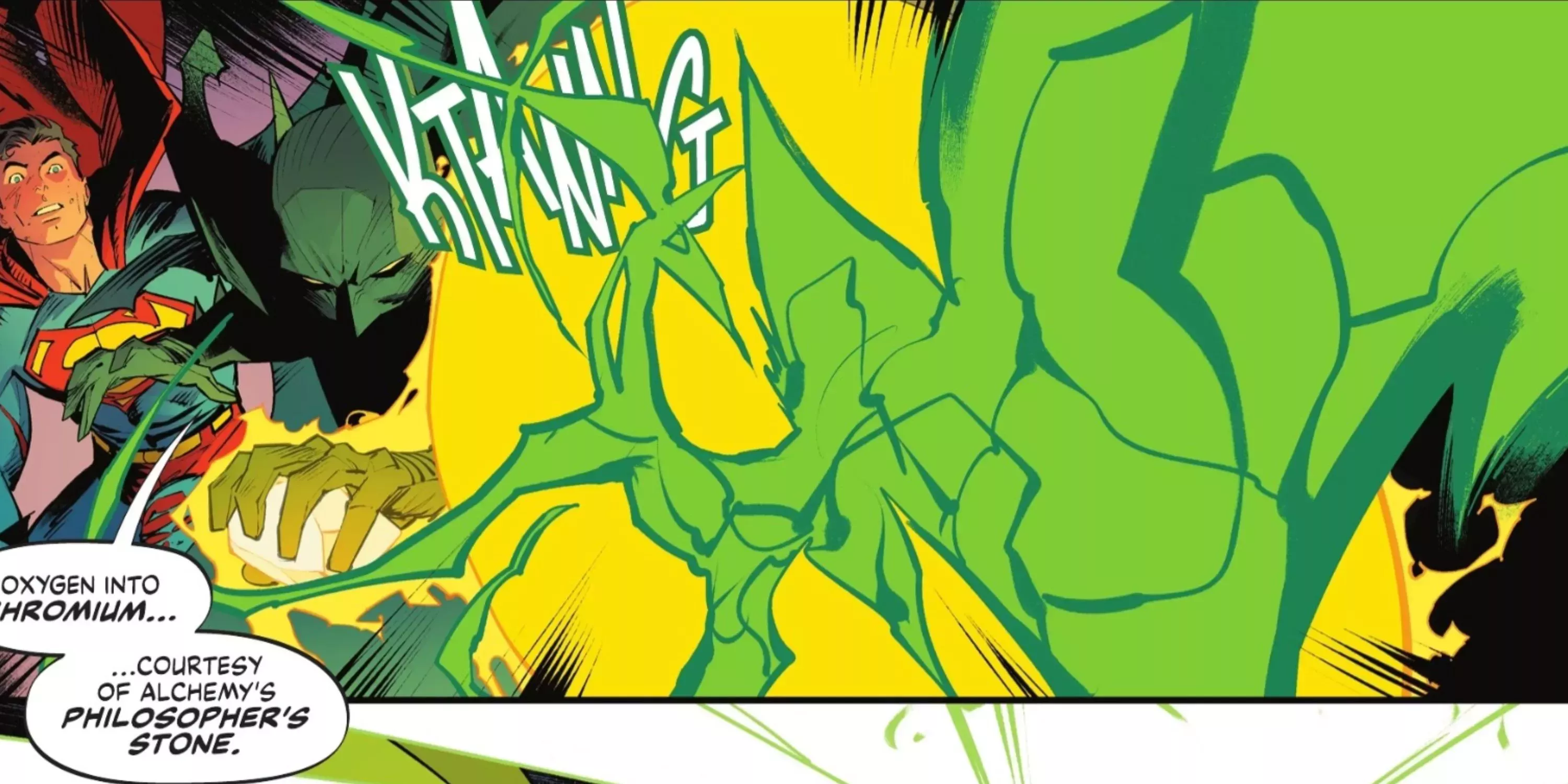 La Piedra Filosofal fue utilizada recientemente por Batman y Superman para crear el "SuperBat", demostrando que puede incluso fusionar diferentes personajes para crear nuevos seres. En posesión de algunos de los malos de DC, la piedra podría servir para crear nuevos monstruos y amenazas, por no hablar de armas y riquezas.