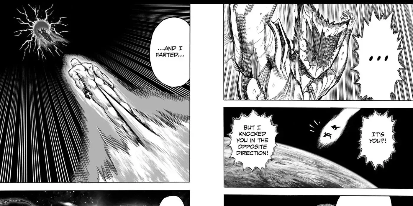 El enorme poder sin explotar de Saitama de One-Punch Man pone a prueba a muchos héroes del anime, incluso a Goku de Dragon Ball, así que ¿cómo es más fuerte?Durante la lucha de Garou y Saitama en el espacio exterior, Garou consiguió lanzar por los aires a Saitama. El Cazador de Héroes se teletransportó inmediatamente, con la esperanza de dejar al calvo héroe flotando sin fin en el espacio. Aunque ni siquiera el gélido vacío del espacio exterior tenía efecto sobre el héroe, el ataque de Garou le habría permitido escapar. Fue entonces cuando Saitama sacó a relucir su peculiar técnica: su pedo.