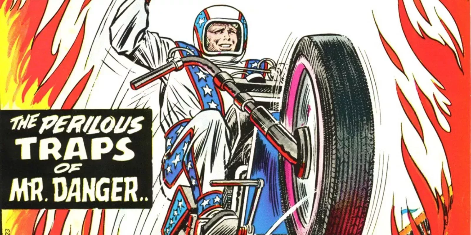 En colaboración con Ideal Toy Company, Marvel publicó Evel Kn ievel nº 1, un cómic de una sola entrega en el que aparecía Evel Knievel realizando varias acrobacias espeluznantes. Como cómic gratuito vinculado a la línea de juguetes de Ideal, el cómic no era más que un anuncio glorificado de los juguetes de Evel Knievel con mensajes positivos de PSA insertados por si acaso. Con lo popular que era, podría haberse creado una serie completa de cómics de Evel Knievel, sobre todo en la cima de su popularidad. Sin embargo, todo lo que Evel Knievel recibió fue un único número de cómic a su nombre, por lo que las posibilidades de su carrera en el cómic quedaron desconocidas para siempre.