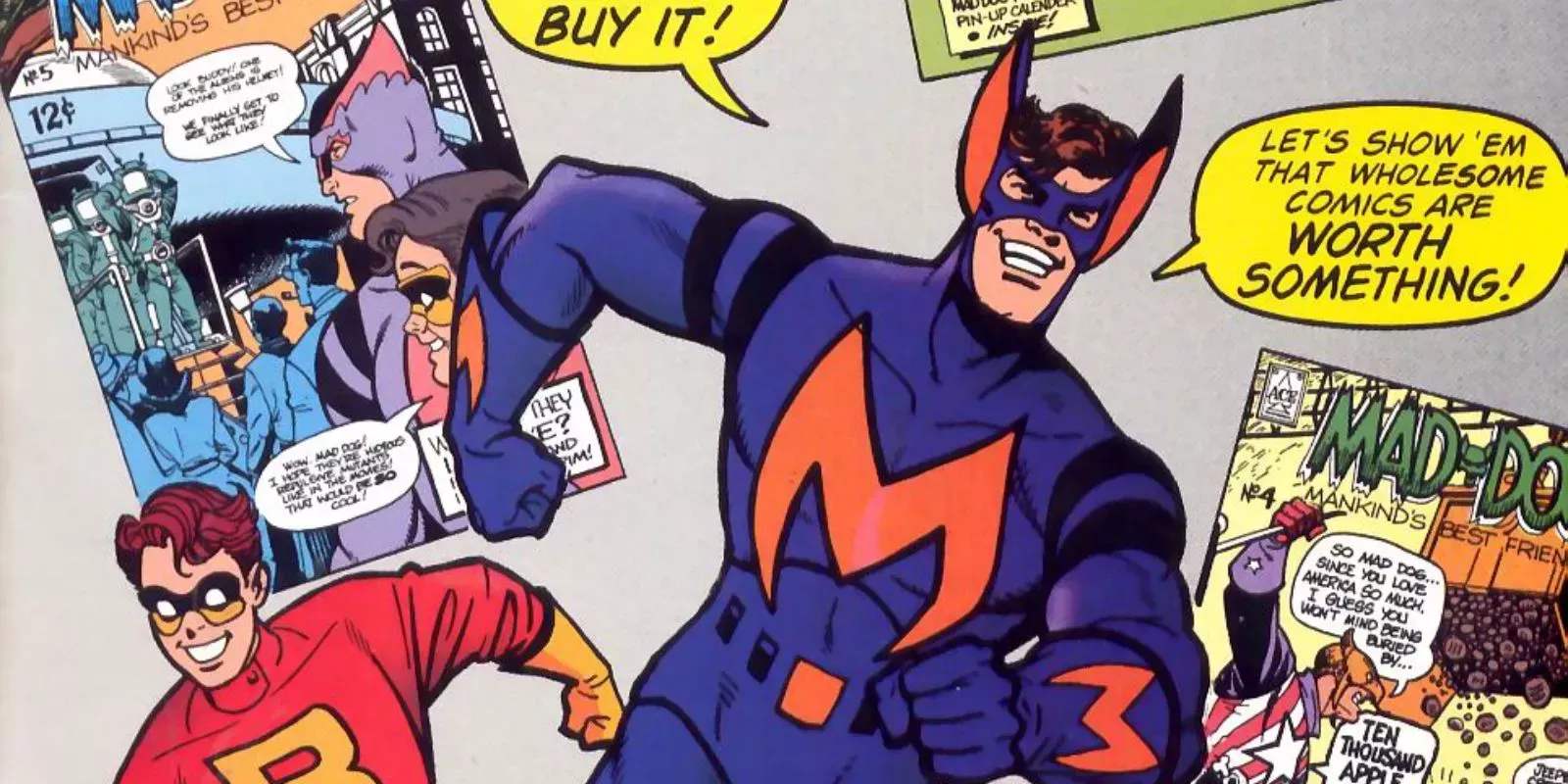 En un momento supremo de metaficción, Marvel publicó una vez una serie de cómics basada en un programa de televisión protagonizado por un creador de cómics y su personaje. Bob, de 1992, se emitió en la CBS y presentaba a Bob Newhart como Bob McKay, el creador de un personaje ficticio de cómic de los años 50 llamado Mad-Dog. La serie se centraba en la lucha de Bob por mantener el control creativo de Mad-Dog frente a la oposición de la Comics Code Authority, Ace Comics y la American-Canadian Trans-Continental Communications Company.