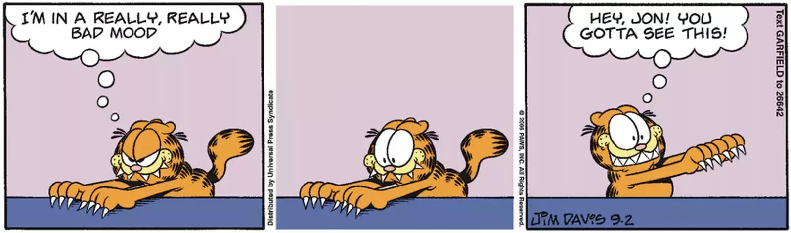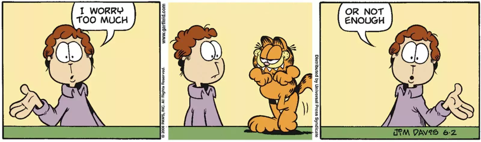 Teniendo en cuenta la cantidad de preocupaciones cotidianas que ya existen sin añadir a las mascotas, Jon sabe que se ve atrapado en sus propios problemas con demasiada frecuencia. Al mismo tiempo, tener mascotas como Garfield, que está encantado de destrozar muebles, cortinas y cualquier otra cosa en la que pueda poner sus garras, sólo agrava el problema, y él lo sabe. Uno de los pasatiempos favoritos de Garfield parece ser dar a entender que Jon aún tiene que descubrir alguna nueva calamidad, y la ansiedad que provoca en su dueño es toda la recompensa que el felino favorito de los fans podría pedir.