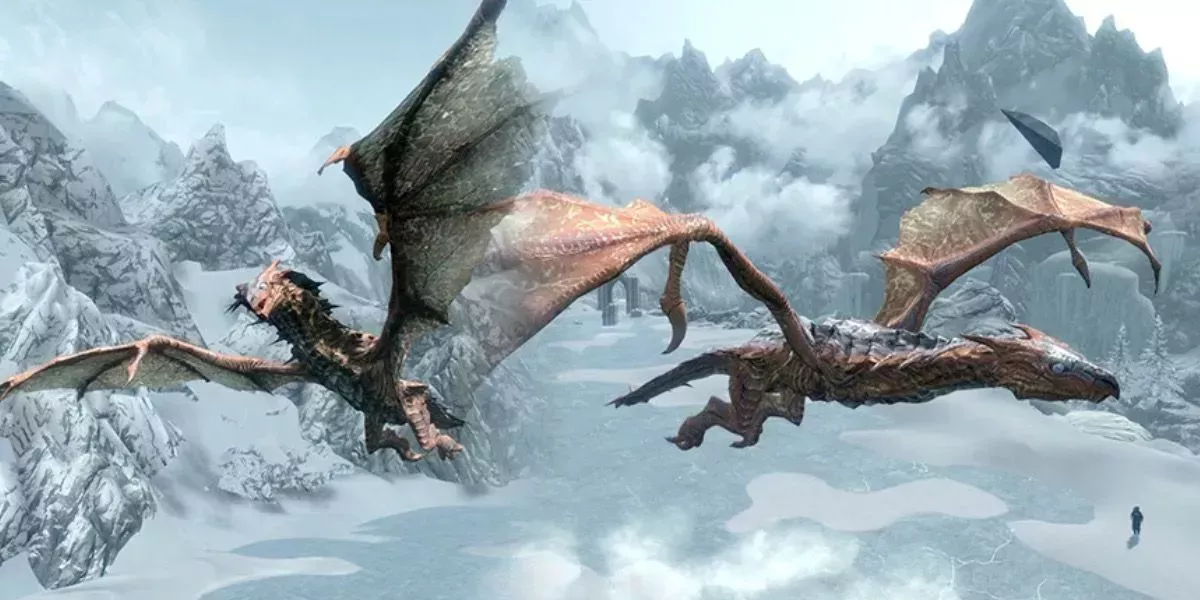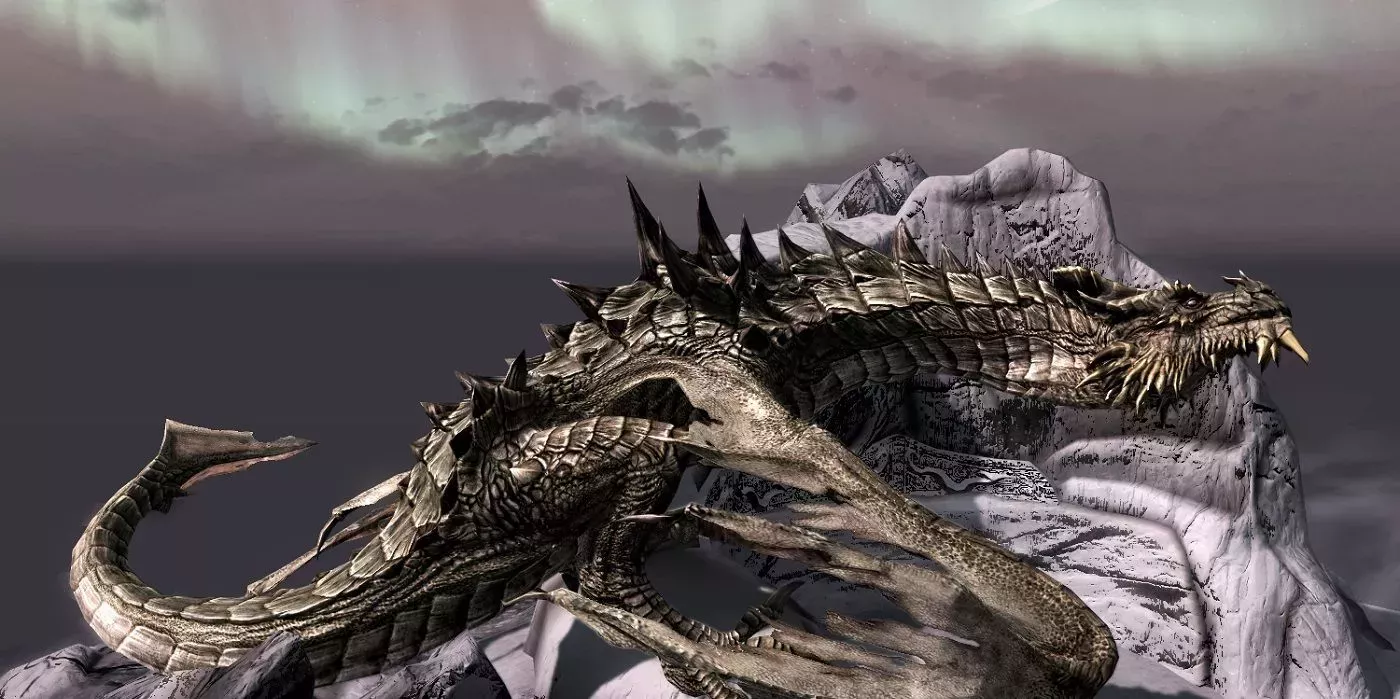 El protagonista de Skyrim es conocido como el Dragonborn, así que no es de extrañar que los dragones estén entre las entidades más importantes del juego. Conocidos como Dovah, estas criaturas son muy inteligentes y poderosas, lo que las convierte en peligrosos oponentes. Los dragones utilizan sus gritos mágicos, denominados Thu'um, tanto con fines ofensivos como defensivos.