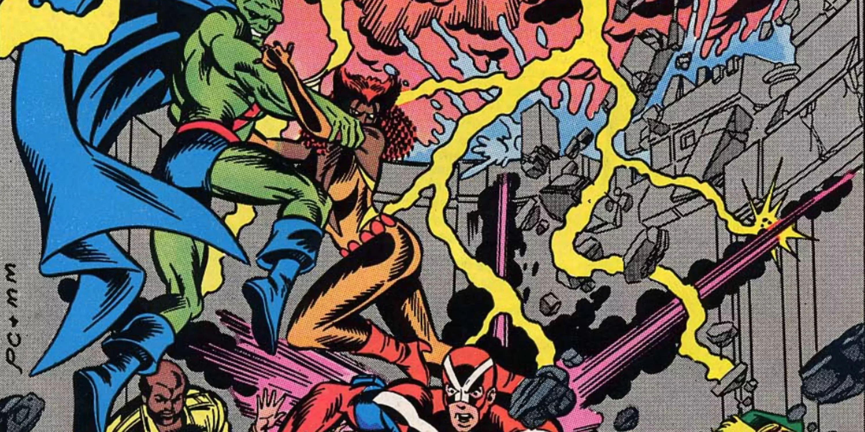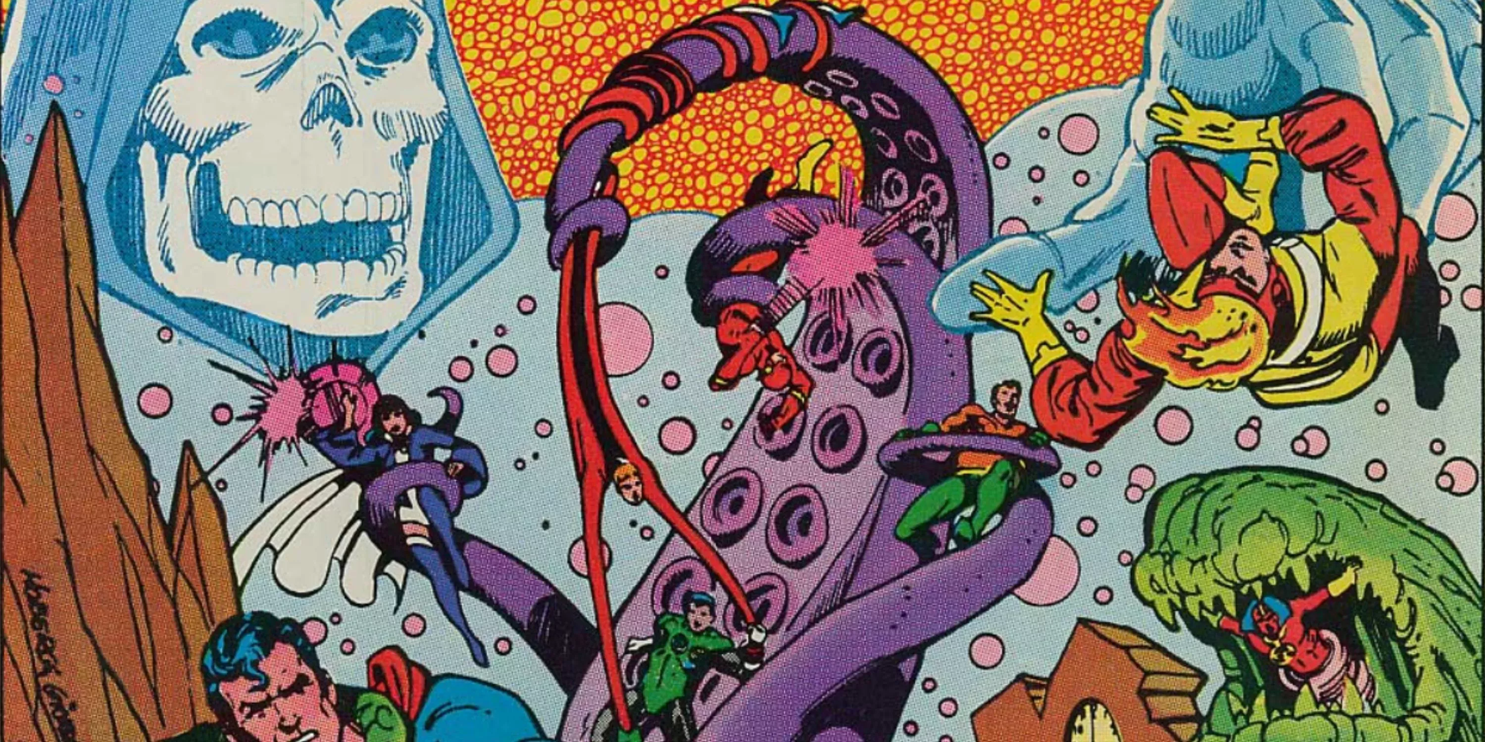 Justice League of America Annual #3 se publicó coincidiendo con el épico espectáculo de Crisis On Infinite Earths, y fue una auténtica epopeya cósmica. La historia seguía a un desorientado Tornado Rojo recién formado en su intento de inundar la Tierra y comenzar un nuevo mundo, provocando naturalmente la resistencia de la Liga.