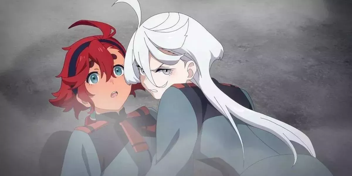 Suletta es una protagonista increíble, con su naturaleza amable, ingenua, tímida y heroica que la hace inmediatamente adorable, al tiempo que prepara a los fans para ser sorprendidos por su inquietante brutalidad al final de la primera temporada. Miorine es igualmente atractiva como deuteragonista de la serie, y el romance entre las dos chicas sería uno de los grandes de todos los tiempos, aunque no fuera revolucionario en términos de representación LGBTQ en el anime. Como antagonistas del arco, Guel, Elan y Shaddiq funcionan como excelentes rivales para Sueltta, cada uno desafiándola y reflejando las críticas de la serie al capitalismo y los prejuicios, de diferentes maneras.