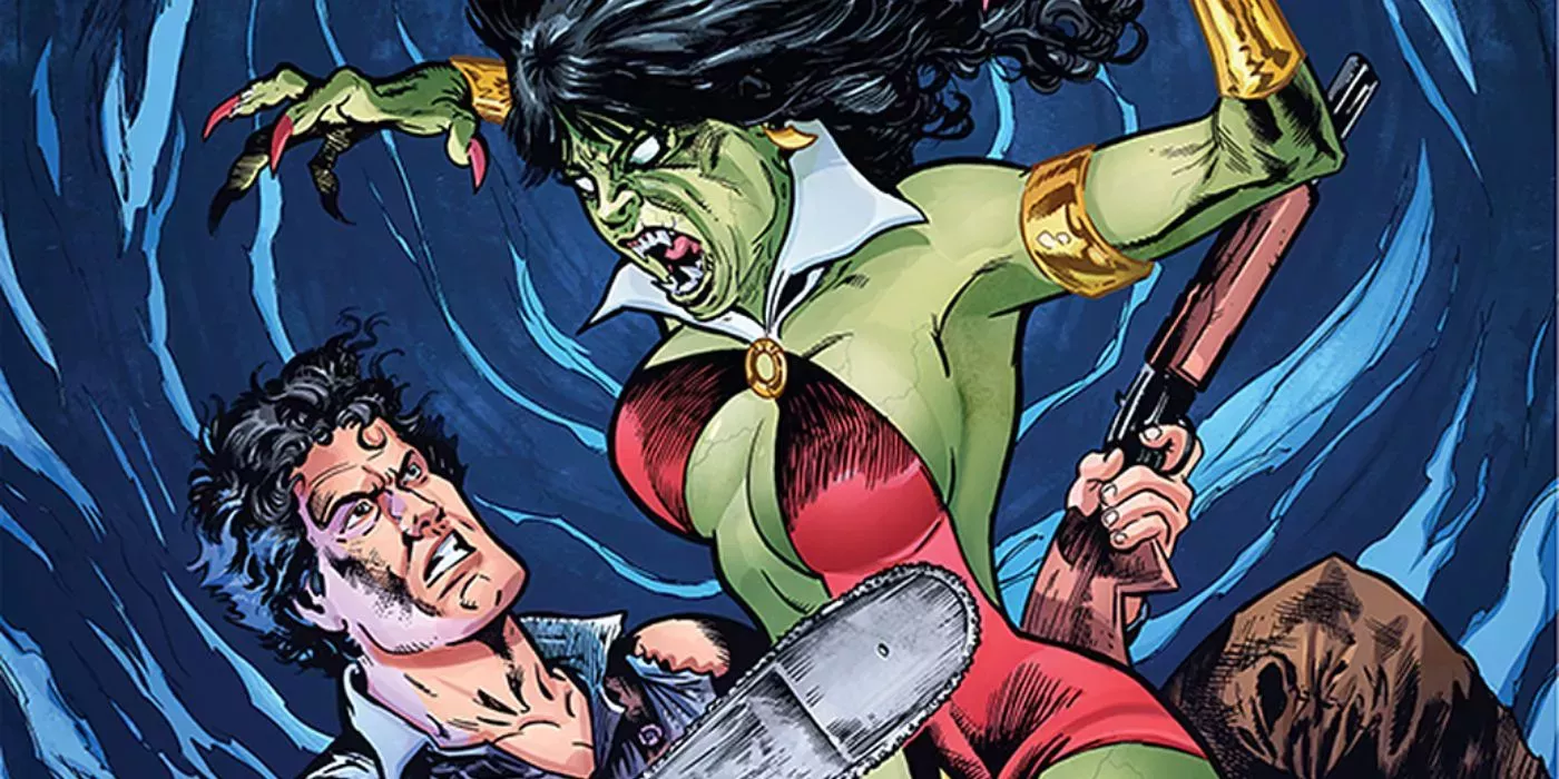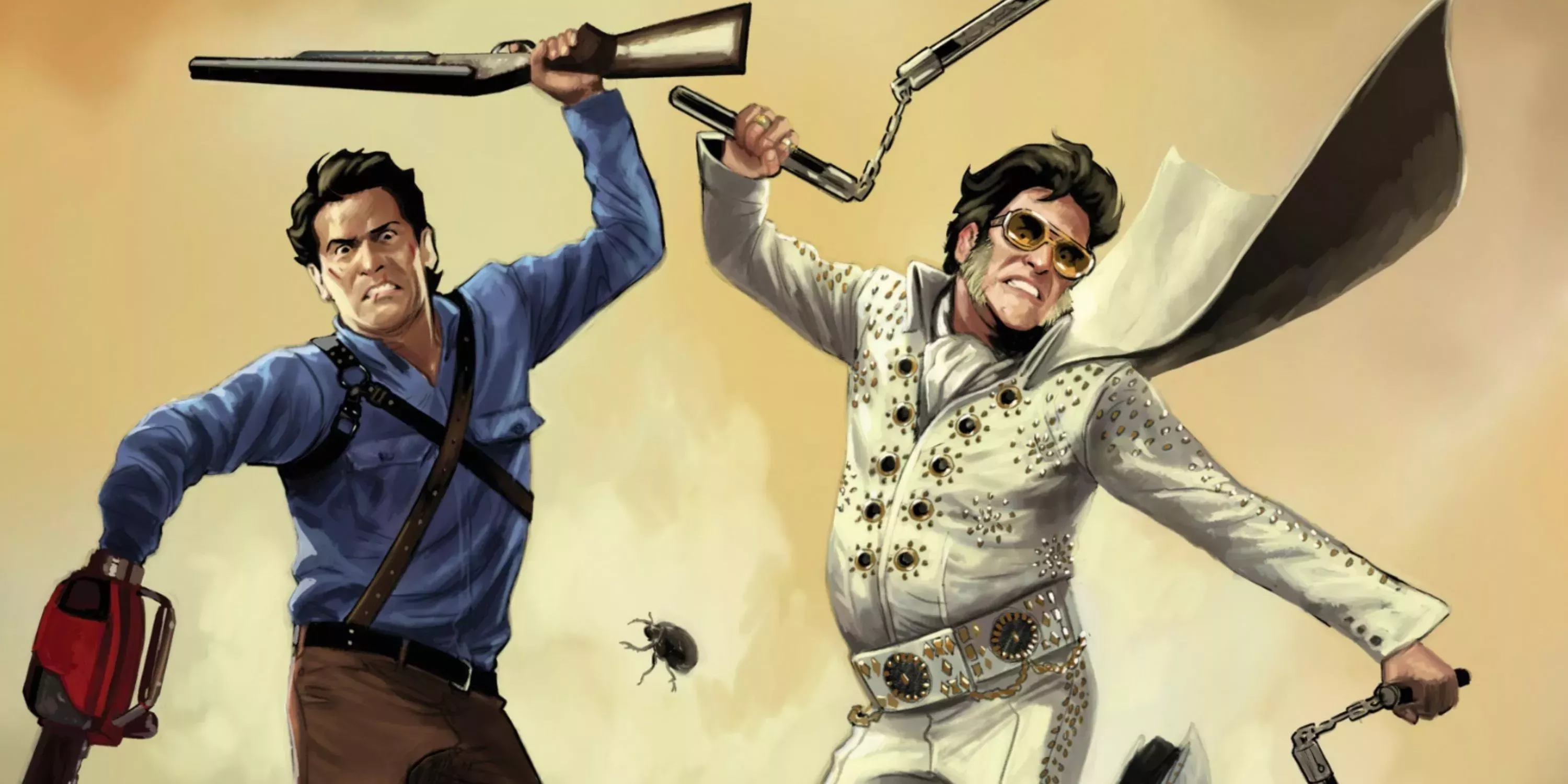 Ash Williams ha sido un personaje recurrente de Dynamite desde mediados de la década de 2000, con multitud de exitosos y entretenidos crossovers con personajes de la talla del Presidente Obama y Xena. En 2019, el héroe de la motosierra se reunió con Sebastian Haff, otro personaje de Bruce Campbell, más conocido como (posiblemente) Elvis Presley.
