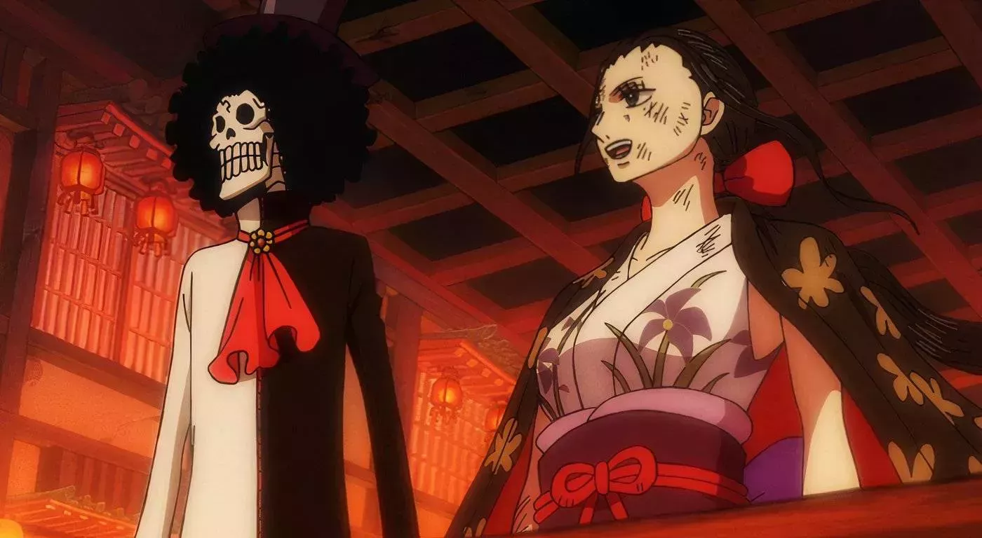 No es muy frecuente que One Piece explore la relación entre Brook y Robin, pero este episodio hace un gran trabajo sacando a la luz sus similitudes. Los rápidos movimientos de Brook están hechos para el estilo de animación más llamativo de Wano Country. Sus técnicas basadas en el hielo salvan a Robin varias veces cuando Black Maria usa el fuego para quemarlos vivos a ambos. Brook es un gran jugador secundario en este episodio, dado que Robin proporciona la ofensiva principal contra los Tobiroppo.
