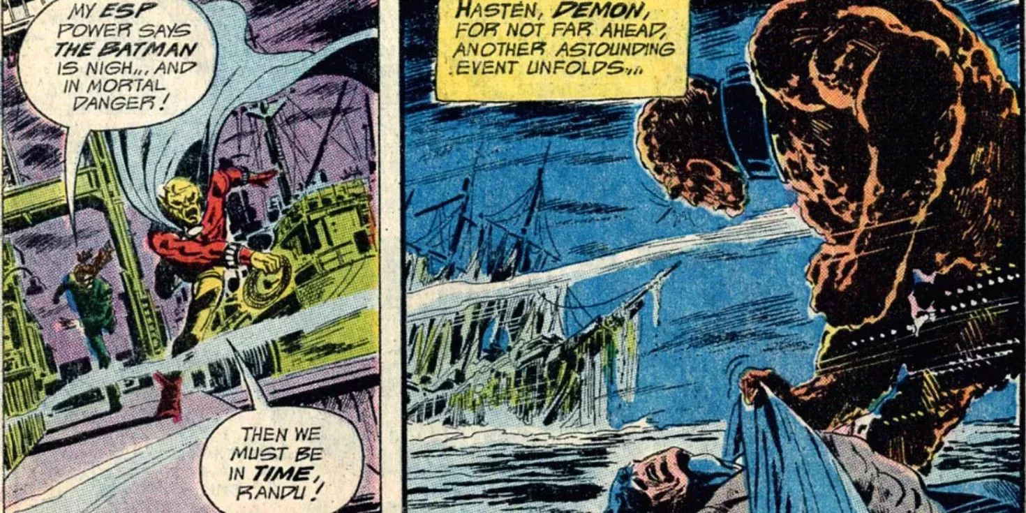 Etrigan y Batman se han cruzado muchas veces en los medios de DC, pero uno de sus primeros encuentros fue en The Brave and the Bold #109 (de Bob Haney y Jim Aparo). El equipo se formó poco después de la creación de Etrigan por Jack Kirby, y su encuentro con Batman estableció su primera asociación.