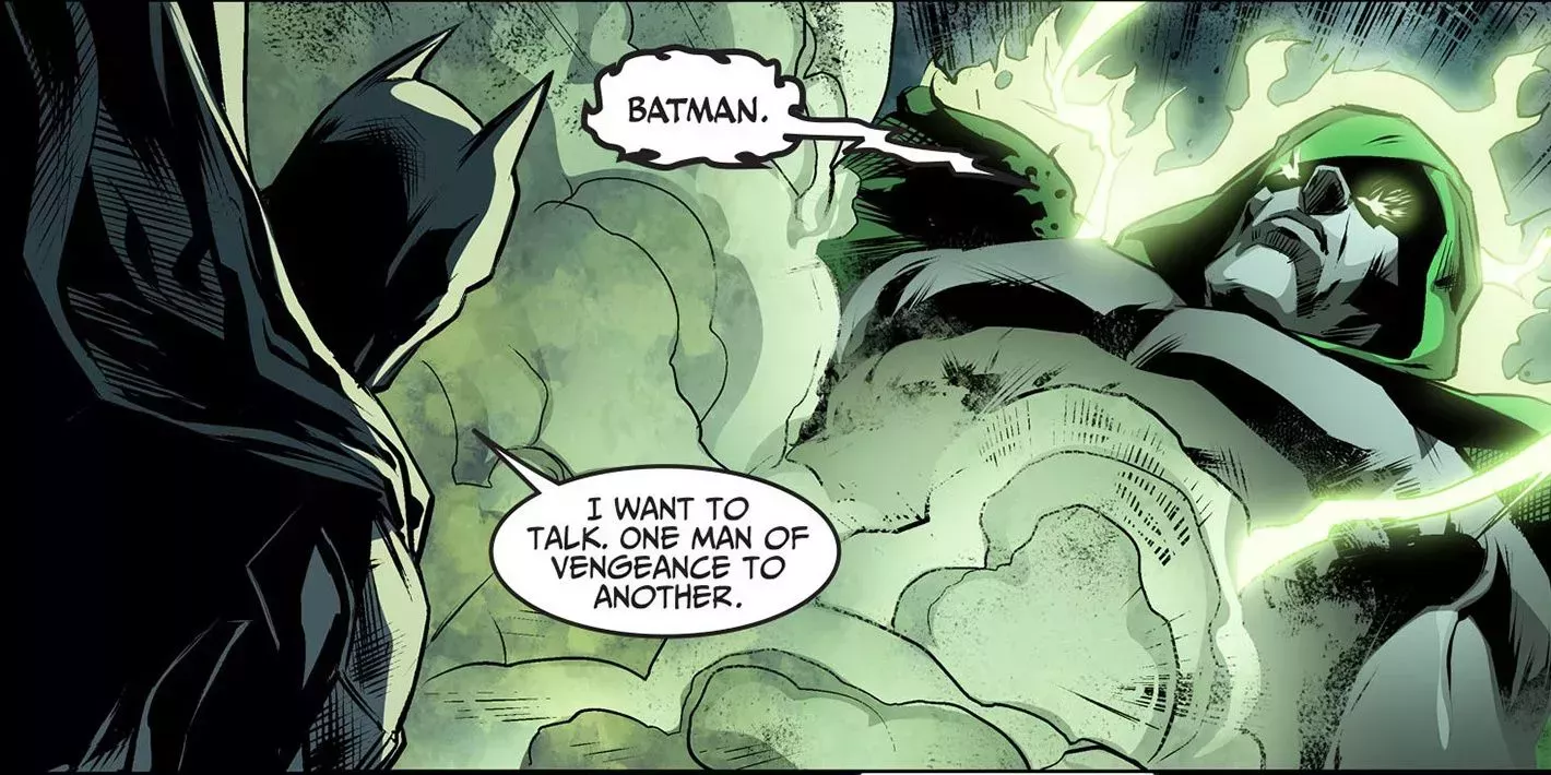 Batman y Spectre son dos héroes definidos por la justicia y la venganza, así que juntarlos tenía mucho sentido. Teniendo en cuenta la coincidencia de los temas más oscuros de ambos personajes y la probada compatibilidad de Batman con lo sobrenatural, su unión ha sido revisitada a lo largo de los años, especialmente en Detective Comics de Tomasi.