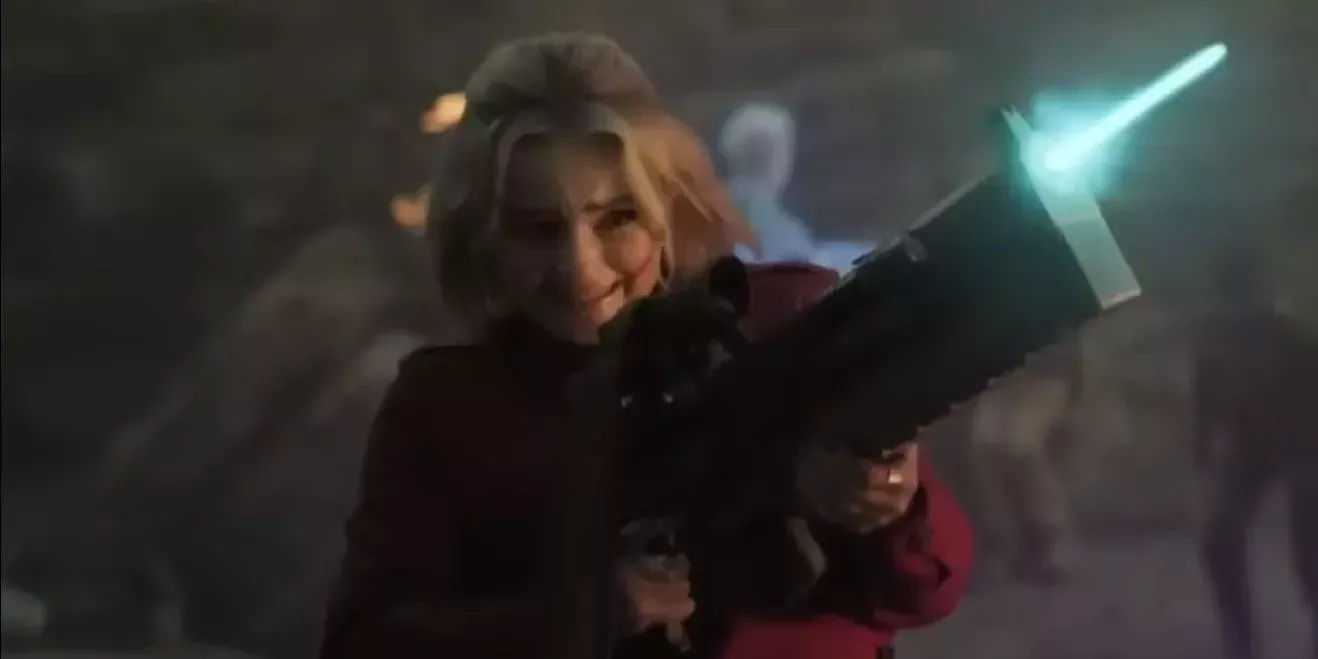 - Ruby Sunday dispara una pistola láser en elDoctor Who remolque.