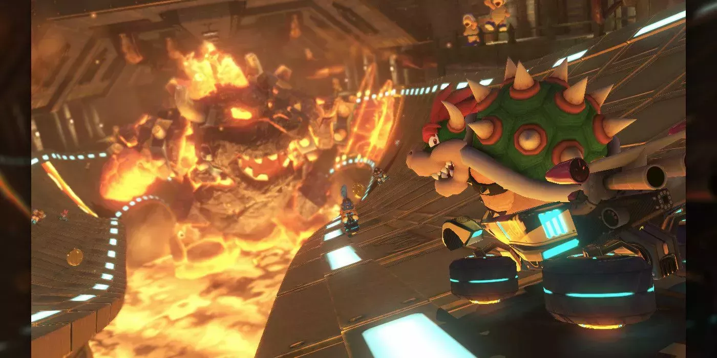 Bowser ha sido un elemento básico de Mario Kart desde los inicios de la serie de carreras y sigue siendo uno de los personajes más pesados y destructivos de la franquicia. Bowser es uno de los pocos corredores que se distinguen por su gran peso, y los personajes ligeros no tendrán ninguna oportunidad contra él en caso de colisión.