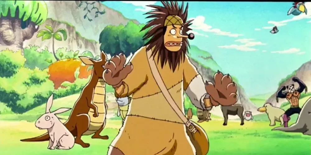 Aunque sólo apareció durante un breve espacio de tiempo en la película de One Piece, El Reino de Chopper en la Isla de los Animales Extraños, Usopp creó un increíble disfraz de león para sí mismo. Tras haber aterrizado en una isla de animales extraños, y después de que uno de sus compañeros de tripulación desapareciera, Usopp utilizó su increíble ingenio para confeccionar un disfraz con el fin de infiltrarse en el reino.