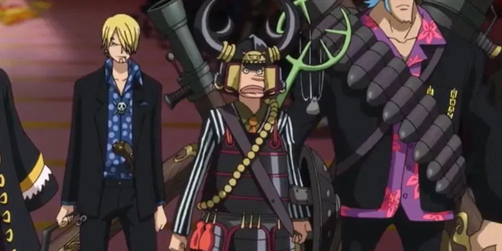 La película One Piece: Z tenía una impresionante variedad de trajes, pero el traje de batalla final de Usopp era el mejor de todos. Ataviado con un largo abrigo rojo, Usopp casi se parecía al Capitán Garfio con su sombrero pirata, su barba y sus espadas a los lados. Sin embargo, conservaba muchos de sus rasgos característicos. Su martillo de 100 toneladas hace una gran aparición después de que Usopp sólo lo usara de forma intermitente a lo largo de la serie.