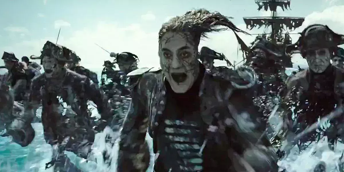 Como un tiburón zombi, Pirates of the Caribbean: Dead Men Tell No Tale pasa por el aro, sin darse cuenta de que ya está muerto.Davy Jones es el villano principal de Piratas del Caribe: El cofre del hombre muerto y En el fin del mundo. Jones no siempre fue el humanoide con tentáculos que el público ve en las películas. Una vez fue un hombre que se enamoró de la diosa del mar Calipso, que le dio el Holandés Errante y le encargó que ayudara a los perdidos en el mar a cruzar al más allá. A cambio, podría venir a tierra cada diez años para estar con ella. Jones aceptó la petición de Calipso, pero ella le traicionó al no estar a su lado cuando regresó diez años después. El abandono le hizo volverse insensible, arrancarse su propio corazón y esconderlo en un cofre para no tener que sentir el aguijón del amor.