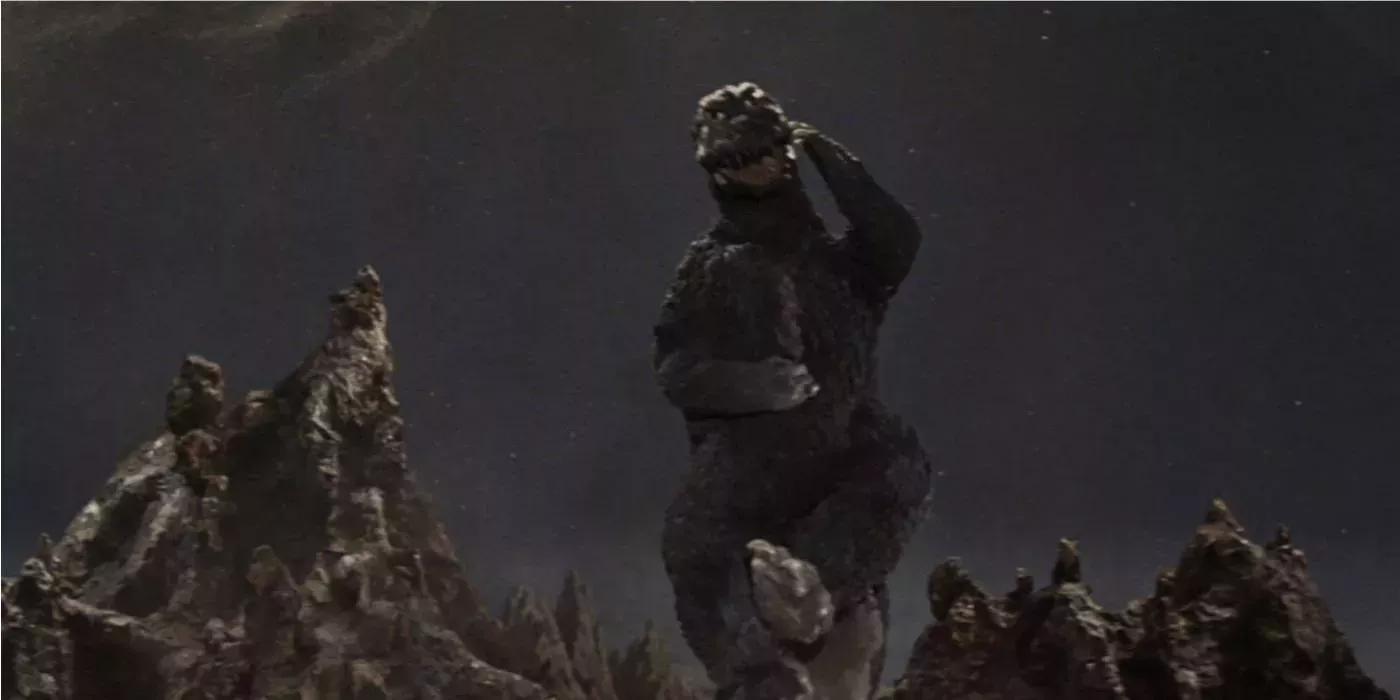 Estrenada en 1965, La invasión de Astro-Monstruo fue la primera película que introdujo alienígenas en el universo Godzilla, haciendo que la era Showa fuera aún más colorista y arraigada en la ciencia ficción. A mitad de la película, los Xiliens del Planeta X secuestran a los monstruos, Godzilla y Rodan, con el pretexto de tomarlos prestados para ayudarles a derrotar al Rey Ghidora. Pero resulta ser una estratagema para eliminar todas las defensas de la Tierra y dar paso a la invasión. No obstante, Godzilla gana el asalto y, para celebrar su victoria, el Rey de los Monstruos baila en una extraña pose que puede hacer gracia a cualquiera que lo vea.