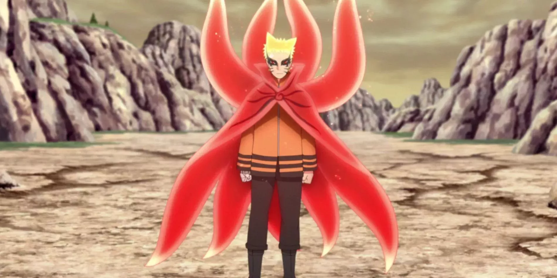 En el modo barión, el pelo de Naruto se vuelve más puntiagudo y su ropa adquiere un tono naranja más oscuro. Lo más llamativo de todo es que lleva una capa de chakra con nueve colas de zorro que se asemejan a lo que cabría esperar si las legendarias Nueve Colas sirvieran de inspiración para una pasarela de moda.