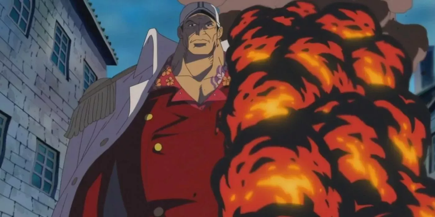 El almirante Sakazuki/Akainu fue uno de los varios antagonistas de la caótica Guerra de Marineford, una gran batalla en la que participaron prácticamente todos los que eran alguien en aquel momento. En ese conflicto, Luffy corrió desesperadamente a salvar a su hermano adoptivo Ace, pero para horror de Luffy, Akainu intervino y lanzó un puñetazo de magma que atravesó claramente el pecho de Ace.