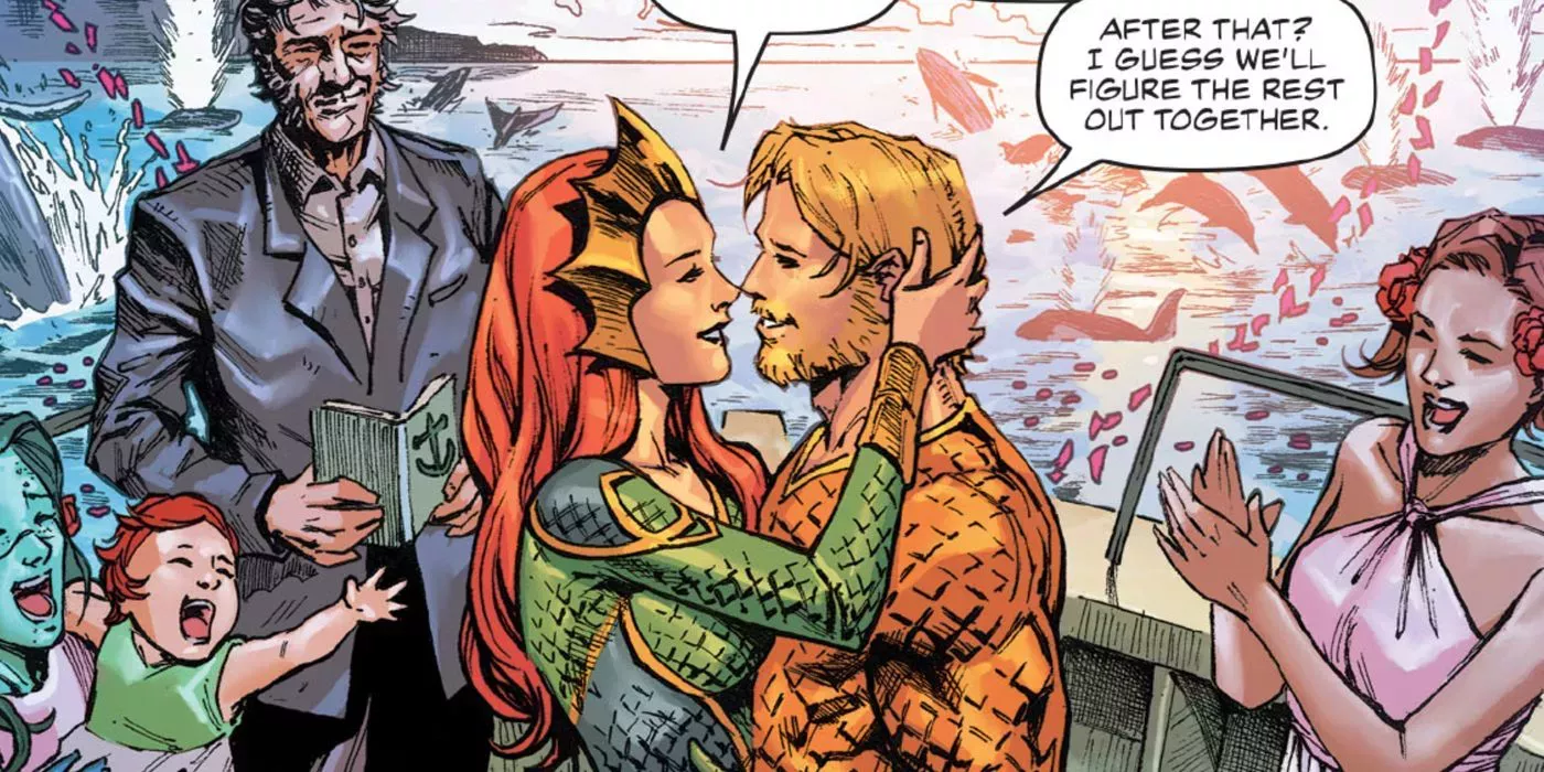 Aquaman y Mera son marido y mujer desde hace décadas en los cómics. Cuando Aquaman se convirtió en rey de Atlantis, eligió a Mera como esposa. Al principio no podían casarse debido a tabúes culturales, pero él la apoyó y superó los prejuicios de la tierra y el mar para su unión. Aquaman y Mera son una de las parejas románticas más infravaloradas de DC, definidas por su amor mutuo.