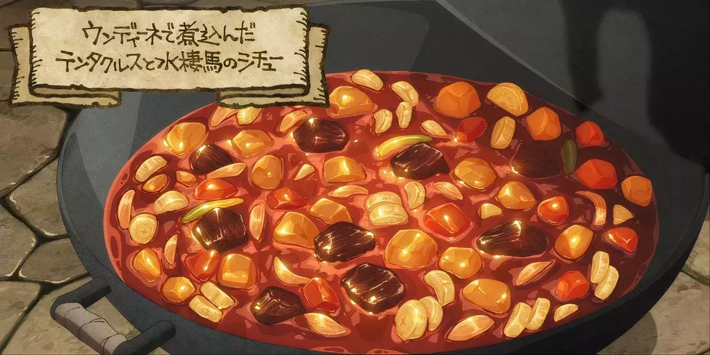 El plato, parecido al curry, no sólo repone el maná de Marcille lo suficiente como para seguir explorando la mazmorra, sino que también parece tener un sabor tan delicioso como todos los experimentos culinarios de Senshi. Y, al integrar la ondina en una comida nutritiva y sabrosa, Marcille pudo disfrutar de su proceso de curación mucho más de lo que había previsto inicialmente.