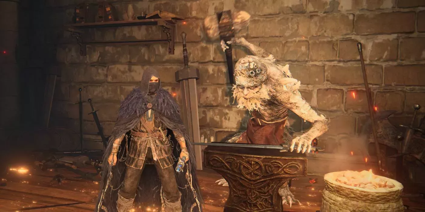 - El maestro herrero Hewg puede mejorar el armamento del jugador Tarnished e infundirle Cenizas de guerra.
