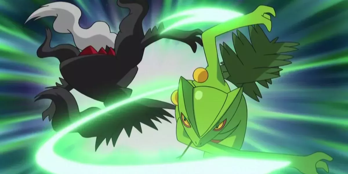 Darkrai es un formidable Pokémon mítico, y aunque hace un rápido trabajo con Heracross, Torkoal y Gible de Ash sin mucha resistencia, hace que el Sceptile de Ash parezca aún mejor cuando finalmente consigue superar al peligroso Pokémon de tipo oscuro.