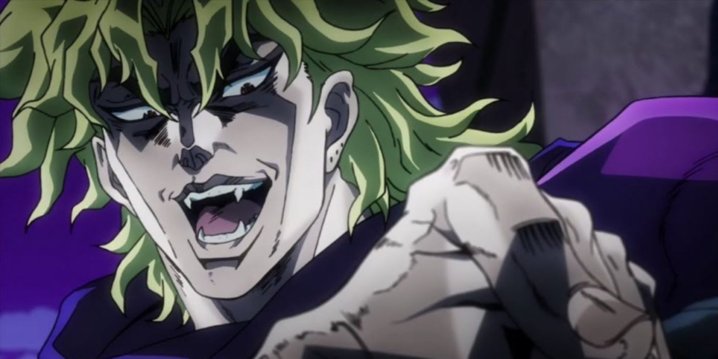 Dio Brando es uno de los principales antagonistas de la franquicia JoJo's Bizarre Adventure. Es un vampiro, así que la sangre humana es un manjar natural para él. Eso sí, no le importa un vaso de vino tinto para acompañarla. Los vampiros son un tema delicado en esta serie. Sus colmillos son sobre todo estéticos, ya que drenan la sangre con las manos. La sangre no es exactamente una necesidad para ellos, pero les permite regenerarse, curar heridas y mantener la juventud. Aunque pueden convertir a otras personas en compañeros vampiros, prefieren convertir a sus víctimas en zombis descerebrados.