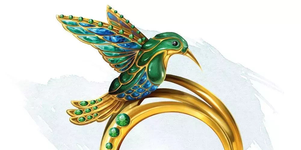 El anillo tiene tres cargas. El portador puede usar una carga para tener éxito en una tirada de salvación de Destreza que acaba de fallar. De este modo, quien lleve el Anillo de Evasión tiene garantizado el éxito en las tiradas de salvación de Destreza. Este es un gran beneficio para cualquier luchador. Sin embargo, los luchadores que se centran en la Fuerza y descartan la Destreza lo encontrarán inestimable.